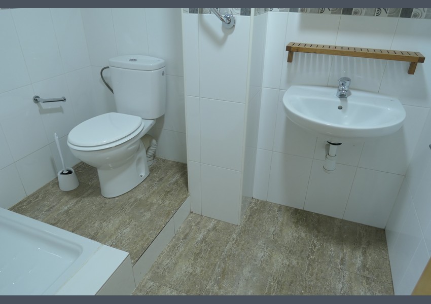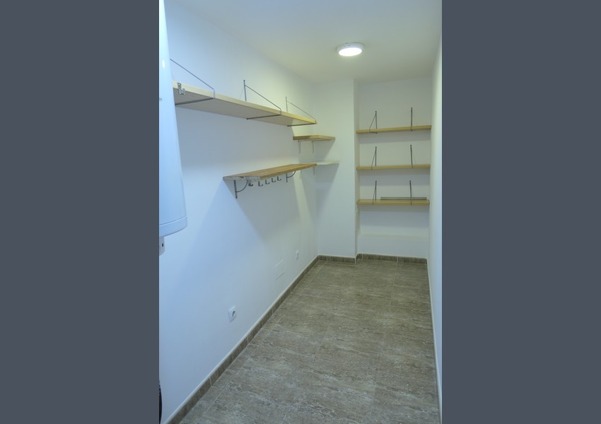 El piso dispone de tres habitaciones, dos dobles y una individual, dos baños (un suite), un aseo, un cuarto como lavadero y despensa, una cocina americana y un gran salón-comedor.